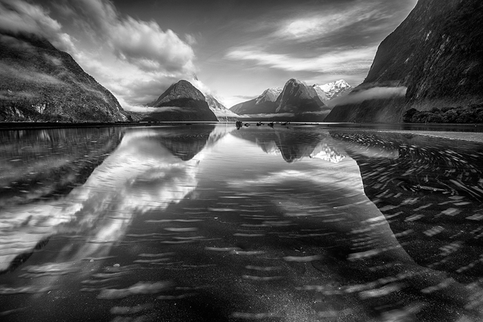 Thanks Yan, I have to confess that at the moment I captured this image, I never envisaged that it would eventually become one of my personal favourites. The title of the photo is called “Desperate Measures” because the behind the scenes situation was really quite frantic. I had carefully set up my composition with this iceberg. As usual I was standing in the ice cold water (this time I stripped down to underwear and sandals since nobody was around) ready to shoot the sunset. Then, at the crucial moment the piece of ice suddenly started to spin and float down the river. I desperately lunged to save it and using my tripod managed to haul it back towards the shore. In fact the sunset was nothing to write home about but the dull conditions forced me to think differently about how I could best make use of the light. The subtle reflection of the cloud on the piece of ice and the surrounding water was the key to making the photo work. In monochrome, I was able to emphasize the glow in a more natural way than it would have been possible in colour. In the end concentrating on creating a dark and ominous mood helped to make this a distinctive Mount Cook shot since almost everyone else focuses on sweet light, colour and reflections. In the past couple of years, I have expanded my repertoire to include more brooding imagery.