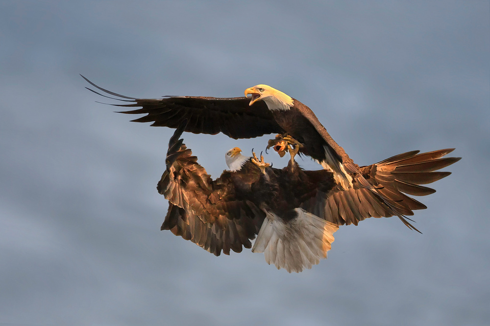 Bald Eagle Fighting for Fish”