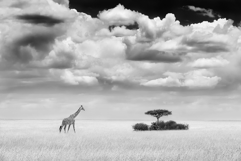 There is no rule of thumb for what kind of scene should turn into a B&W photograph. In general, I find low contrast scenes, overcast cloudy skies, rough surfaces with lots of texture (elephant skin), and animal’s with a grey body colour or black white skin pattern (like zebra, wildebeest, giraffe) are more suitable to turn into a B&W photograph.